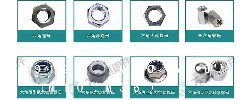 六角螺母(Hexagon nut)與螺栓、螺釘配合使用,起連接緊固機件作用。其中經(jīng)1型六角螺母應用最廣,C級螺母用于表面比較粗糙、對精度要求不高的機器、設備或結(jié)構上;A級和B級螺母用于表面比較光潔、對精度要求較高的機器、設備或 0.750”0.690”1.000”5/8”0.940”0.820”1.230”3/4”1.300”1.260”1.770”7/8”1.500”1.200”2.000”M1015mm11mm20mmM1219mm17.5mm25mmM1624mm21mm32mm螺母是具有內(nèi)螺紋并與螺栓配合使用的緊固件,